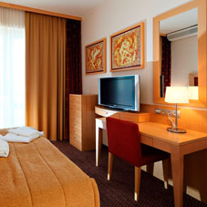 Modern-design hotel has 66 rooms, Lobby Café, an underground garage and Restaurant Terasa on the 5th floor of the hotel with a unique view on Drava river and Pohorje hill. The old town can be visited on foot, because all of the important sights are only a step away.